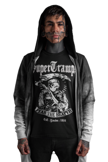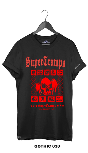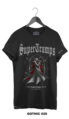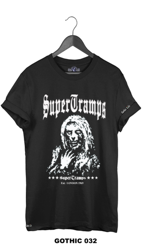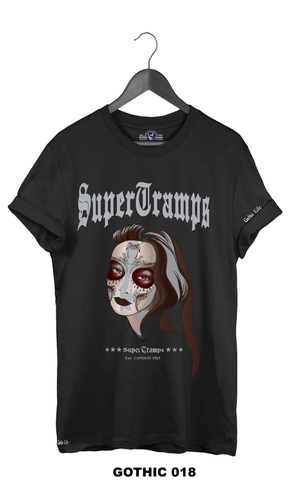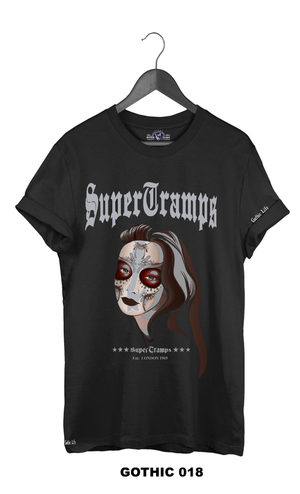 Welcome to SUPERTRAMPS GOTHIC T-SHIRT RANGE. All of the prints here are digitally printed and are soft to the touch. No 2 shirts are the same. Once 100 prints of that particular design has sold it is then discontinued and a new design is put up.